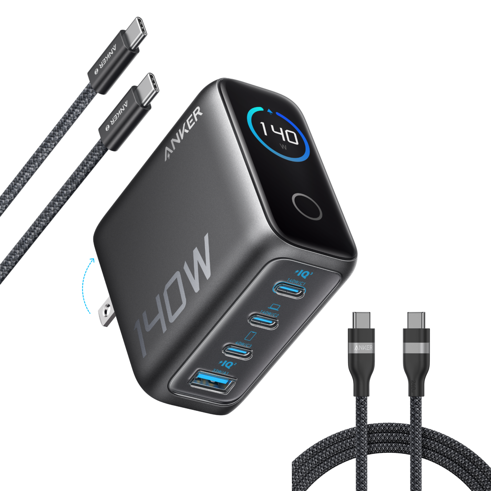 Workspace Power Set | Anker Charger (140W, 4-Port, PD 3.1) with 2-Pack USB-C Cable