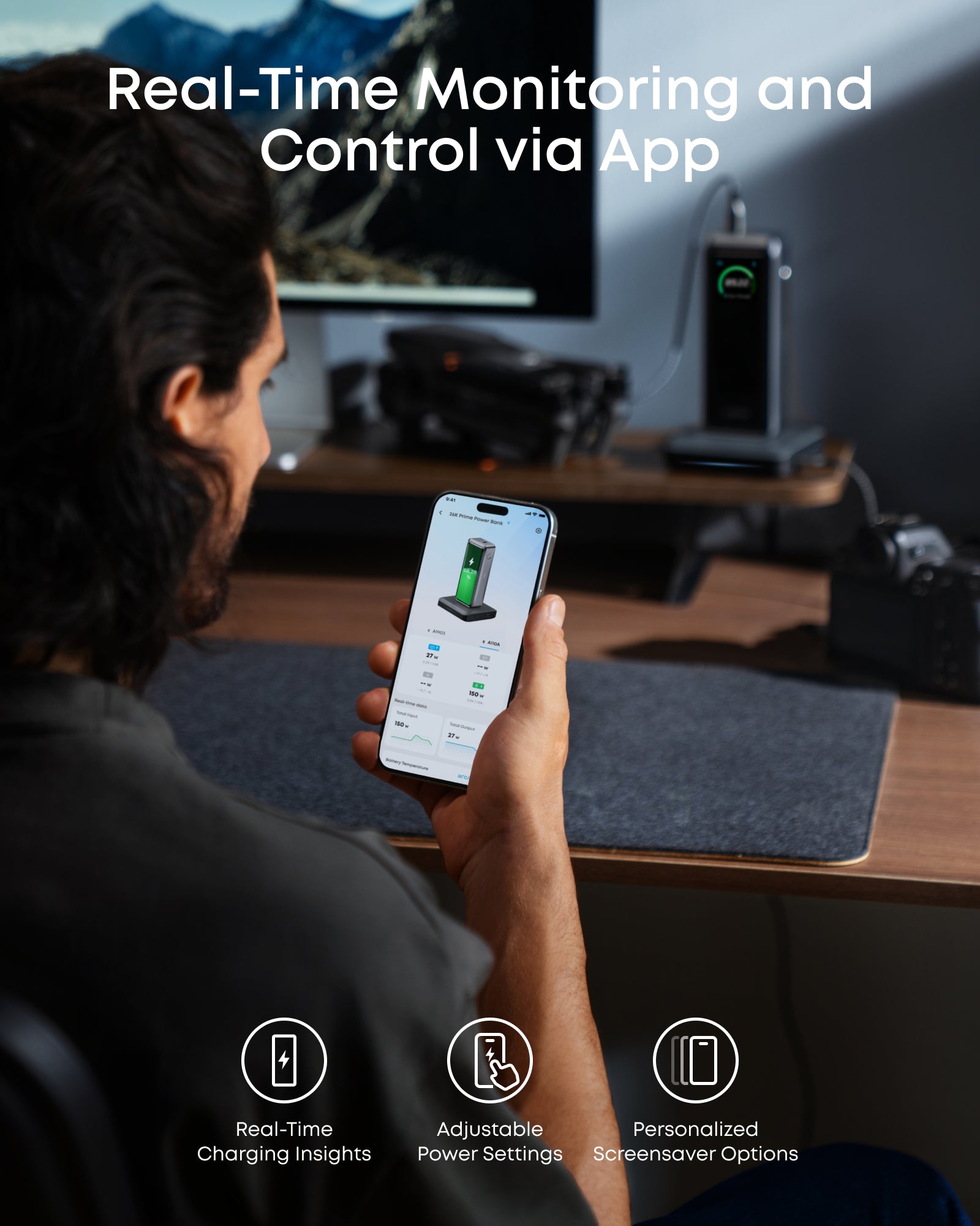 - Smart Display and App Control: Provides detailed charging information of the power bank and charging base, and allows manual adjustments of output power on the APP.