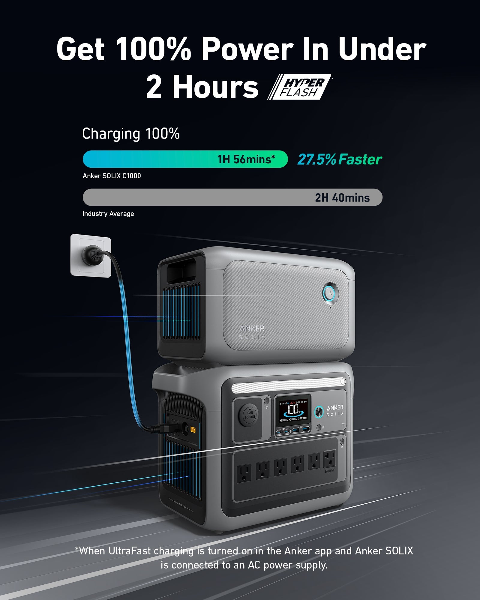 Anker SOLIX C1000 + Expansion Battery - 2,112Wh | 1,800W